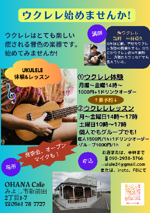 👉きらめきウクレレは、みよし市、東郷町、豊田市などでウクレレレッスンやライブを随時開催しています。ウクレレを始めてみませんか!ウクレレは誰でもいくつからでも始められる楽器です!